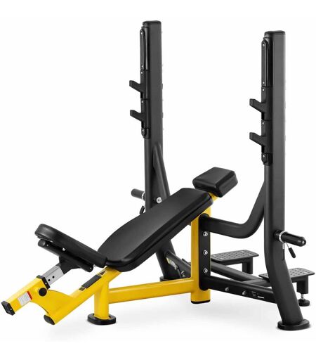 Le banc incliné de Gymrex pour votre gym ! Vous dirigez une salle de sport ou vous souhaitez aménager un espace de gym à la maison ? Pour travailler les pectoraux, les épaules et les triceps, vous aurez besoin du banc incliné 100 % confortable, fait de matériaux de qualité et doté d'une grande capacité de charge, il vous permettra de multiplier les exercices et vous garantira forme, équilibre et longévité ! Le banc de musculation : un équipement stable et de qualité Grâce à son bâti en acier peint par poudrage, ce banc de musculation est très solide et il supporte un poids maximal de 135 kg. Il convient donc à de nombreuses méthodes d'entrainement et aux athlètes de tous niveaux, qu'ils et elles soient novices ou professionnel·les. De plus, il possède des supports de barre situés à une hauteur ergonomique et confortable. Le banc de musculation est doté d'un siège rembourré, revêtu de faux cuir, sur lequel on peut s'assoir confortablement pendant les exercices. Grâce à son bâti en acier de couleur argentée, il séduit par un look sportif et se prête à tout type de salle de sport ou d'espace de gym à la maison. Flexibilité idéal pour les salles de sport ou la gym à la maison Praticité surface de couchage et d'assise ergonomique Forme travail des pectoraux, des épaules et des biceps, et utilisable avec des haltères Qualité matériaux durables et de qualité Confort assise confortable Couleur(s) Argent métallisé Matériau(x) Acier peint par poudrage Plage de réglage [mm] (Siège) 200 Matériau du siège Faux cuir (PU) Dimensions siège [mm] 300 x 230 Broches comprises [unités] 4 Rembourrage de l'assise Mousse haute densité résistant à la déformation Capacité de charge du support de barre [kg] 200 Poids max. de l'utilisateur [kg] 135 Diamètre de tuyau maxi [mm] 50*100 Dimensions (LxlxH) [cm] 150 x 124 x 141 Poids [kg] 97 Dimensions de l envoi (LxlxH) [cm] 179 x 98 x 33.5 Poids de l envoi [kg] 106 Contenu de la livraison Banc incliné Manuel d'utilisation ...
