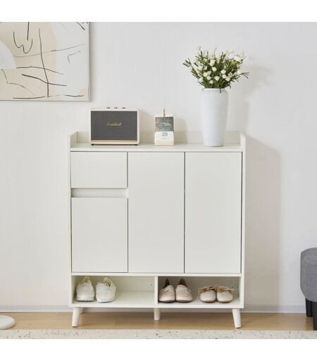 FORTUNA LAI Buffet - Meuble à chaussures avec étagères réglables - Pieds en bois massif - 90x99x35cm - en Panneau de particules Blanc