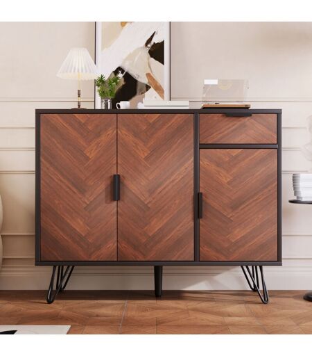 Fortuna Lai - Buffet 90x30x71.5cm - Meuble de rangement avec 3 portes, tiroir et étagères réglables en hauteur - Noir