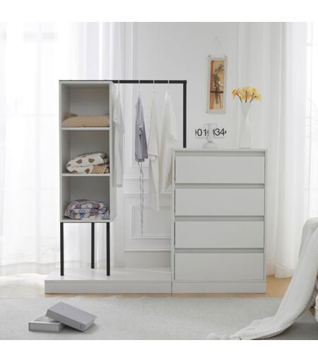 FORTUNA LAI Armoire de rangement - 140x40x135cm - ensemble d'armoire avec commode à tiroirs, tringle à vêtements - blanc
