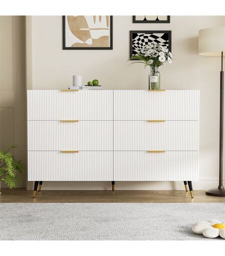 FORTUNA LAI Commode 120x77x40cm - Commode à 6 tiroirs avec poignées dorées, armoire de rangement - élégant au design moderne - Blanc