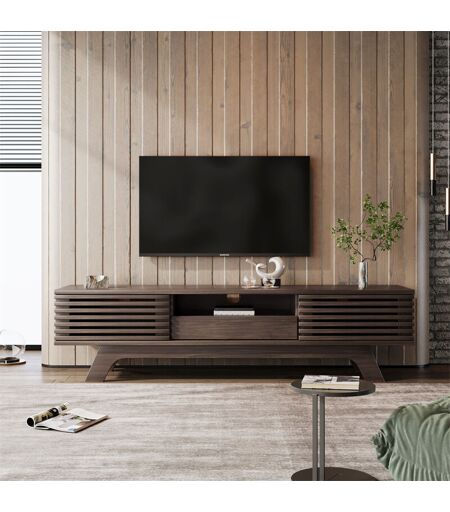 FORTUNA LAI Meuble TV 150x40x44.5cm- avec tiroir et 2 portes - Design unique, couleur bois vintage.