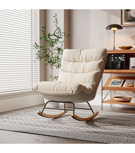 FORTUNA LAI Fauteuil à bascule inclinable, rocking chir avec dossier réglable sur 12 niveaux, 72x83x93cm, tissu Lin+Leathaire, beige