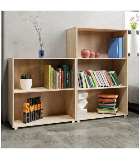 Le Poisson Qui Jardine - Set d'Étagère 115 cm + 77 cm de haut Colonne bibliothèque Couleur chêne - Chêne Clair