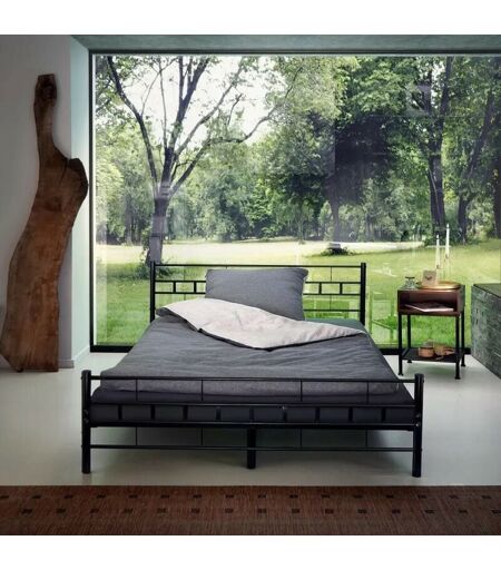 Le Poisson Qui Jardine - Lit métallique Moderne Noir avec sommier 200 x 140 cm - Noir