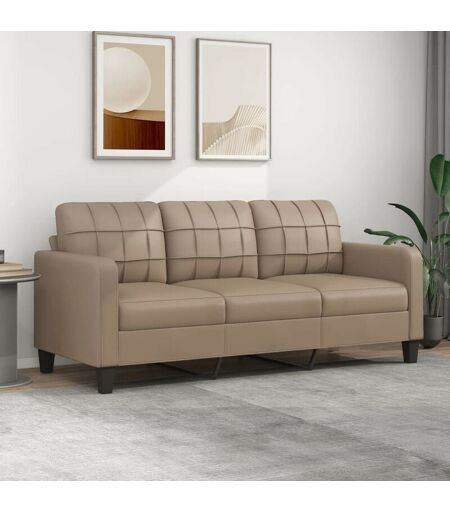 Le Poisson Qui Jardine - Canapé ou Sofa 3 Places 180 cm Simili Cuir Beige. Avec Pied en bois. Confort et qualité - Beige