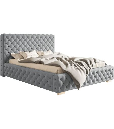 EMPORIUS Lit Adulte 140x200 cm Adonis - Lit Double, Tissu Velours Gris clair (Jasmine 90)