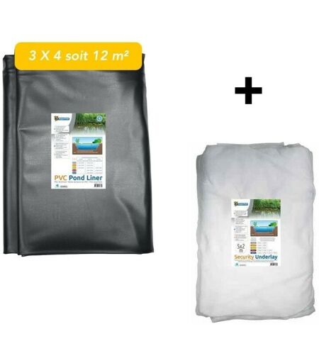 Le Poisson Qui Jardine - Pack Bassin de jardin : Bàche liner 12 m² 3X4m + feutre géotextile de protection - Noir