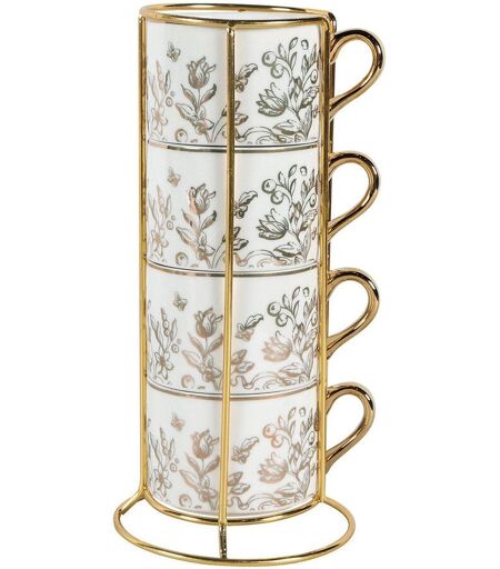 Malongo Set de 4 tasses à café Escale à Sintra et son support doré