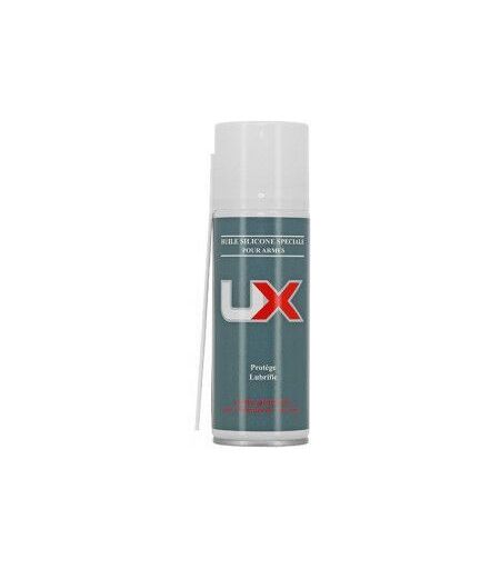 AEROSOL HUILE SILICONE UX 200 ml Spray d'huile siliconée lubrifiante pour l'entretien de vos armes. Umarex développe sous sa marque UX un aérosol d'huile siliconée pour l'entretien de vos armes à air comprimé. L'utilisation principale sera la lubrification de vos joints et autres pièces sujettes aux frictions. Afin d'assurer un fonctionnement optimal de vos armes et répliques, il est important d'apporter du silicone. Cet aérosol d'entretien UX apporte lubrification, protection anti-corrosion, antistatique et brillance. C ontenance de 200ml . ...