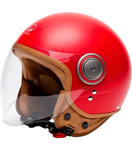 Casque jet. Coque en polycarbonate. Fourni avec 2 visières, une longue et une courte type aviateur. Intérieur en alcantara démontable et lavable. Champ de vision large. Livré avec une housse de transport et des stickers réfléchissants. Fermeture de la jugulaire par boucle micrométrique. Homologué ECE 22-06. ...
