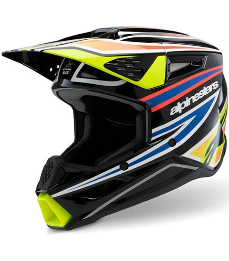 Casque cross pour enfant. Quatre tailles de coque, ajustement anatomique, optimise la protection en cas d'impact. Couche extérieure en carbone haute densité, couche composite unidirectionnelle et couche en fibre d'aramide. Résine époxy pour une meilleure gestion de l'énergie. Profil lisse et aérodynamique. Réduit la force transmise au cou et à la colonne vertébrale. Nouveau profil de la mentonnière réduit les risques de blessures à la clavicule, coussinets latéraux amovibles. Technologie MIPS pour une protection multidirectionnelle, système de libération d'urgence de la visière, et nouvelle technologie d'éjection. Homologué ECE 22-06. ...