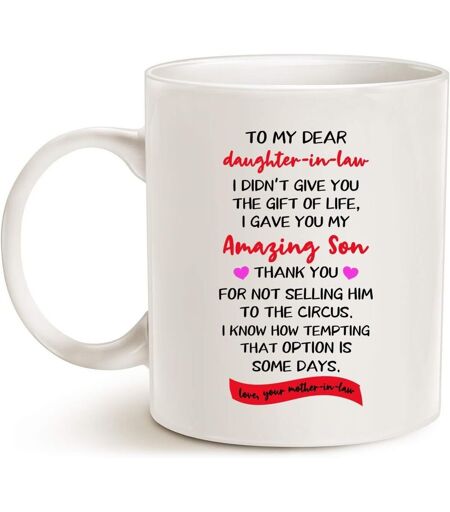 Cadeaux Drôles Pour Belle-Fille, À Ma Chère Belle-Fille, Je Ne Vous Ai Pas Donné Le Cadeau De La Vie, Je Vous Ai Offert Mon Incroyable Fils. Tasse À Café Love Your Mother-In-Law, Blanche, 11 Oz