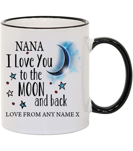 Tasse Personnalisée Nana I Love You To The Moon & Back, Café, Thé, Cacao, Soupe, Usage Quotidien, Fête D'anniversaire De La Saint-Valentin, Souvenir Unique, Tasse En Céramique. (Jante Noire)