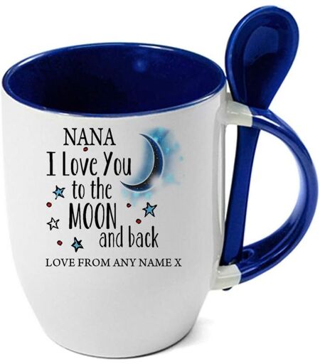 Tasse Personnalisée Nana I Love You To The Moon & Back, Café, Thé, Cacao, Soupe, Usage Quotidien, Fête D'anniversaire De La Saint-Valentin, Souvenir Unique, Tasse En Céramique. (Cuillère Bleue)