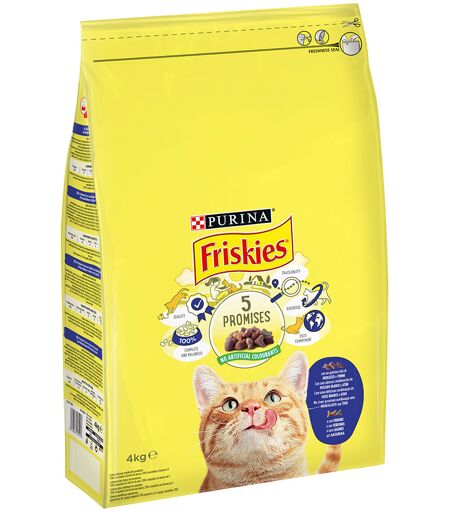 Les croquettes PURINA Friskies Adult saveur colin légumes sont savoureuses et croustillantes. Elles sont préparées sans colorants, arômes ni conservateurs artificiels. Le colin confère à ces croquettes une saveur irrésistible et garantit une haute... ...