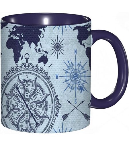 Tasse A Cafe Boussole Carte Du Monde Motif Inspirations Vintage Fleches Et Continents Rose Des Vents Grunge.Impression Indigo Bleu Tasse De Tasse Coloree Pour Le Bureau A Domicile The Cafe