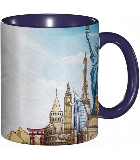 Tasse A Cafe Urban Famous World Landmarks Effet 3d Croquis Realiste Dessin Design Voyage.Impression Bleu Marron Tasse Coloree Pour Le Bureau La Maison Le The Le Cafe