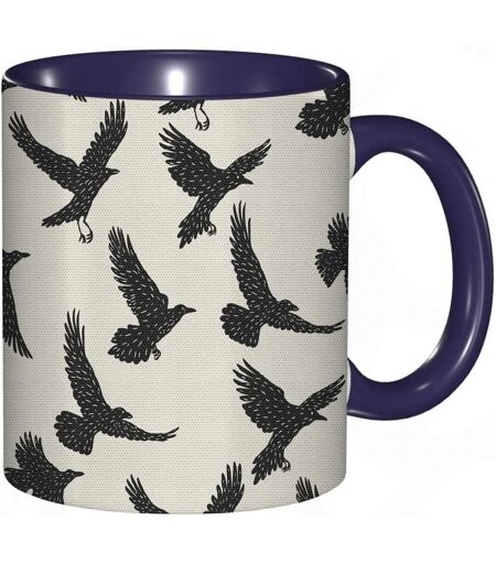 Tasse A Cafe Raven Ink Drawing Style Abstract Flying Birds Pattern Wildlife And Freedom.Eggshell Black Print Tasse Coloree Pour Le Bureau La Maison Le The Le Cafe