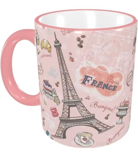 Tasses A Cafe De 11oz, Tasse En Ceramique Rose Macaron Paris, Grande Tasse A The Pour Le Bureau Et La Maison Elegante, Cadeau De Remerciement
