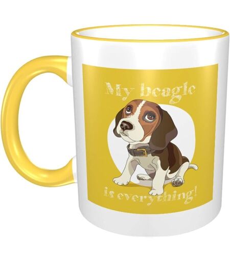 Tasse Jaune A Collier De Beagle Pour Chiot, Tasse A Cafe, Tasses A The, Cadeau De 11oz, Excellent Cadeau Pour Les Amoureux Du Collier De Beagle A Chiot