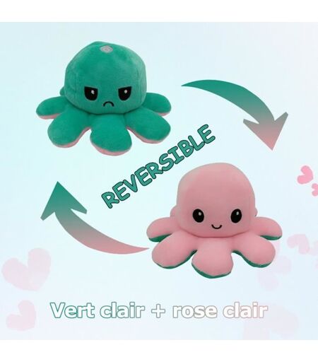 Pimpimsky Jouet En Peluche Pieuvre Mignonne Vert Et Rose ,Jouet En Peluche Double Face Flip Octopus, Jolie Poupée De Poulpe Réversib