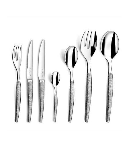 Ménagère 62 pièces table & steak de la collection Jet Textil par Lou Laguiole. Le Jet est une gamme Lou Laguiole® au design contemporain, souligné par un poinçon d'abeille stylisé. Le Jet se remet sur le devant de la scène avec le Jet Textil et son décor travaillé et inspiré de la "haute couture". La gamme Lou Laguiole® est une collection unique de couverts et de couteaux Laguiole. Notre expertise nous a permis de créer une gamme Laguiole qui allie tradition et modernité. Lou Laguiole® est une marque déposée et distribuée exclusivement par Amefa. ...
