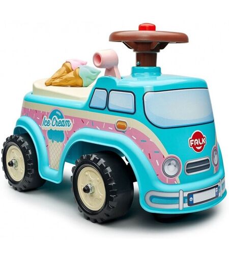 Envie d'une petit glace ? Il suffit d'appeler le porteur Glacier Falk ! Quoi de mieux qu'une petite gourmandise glacée pour se rafraîchir lorsqu'il fait chaud ? Avec le porteur Glacier de la marque Falk, votre enfant deviendra un véritable glacier grâce aux accessoires inclus. Cornet de glace pistache, donuts à la fraise ou muffins au chocolat ? À vous de choisir ! Doté d'un volant directionnel avec klaxon, ce porteur est très maniable. Votre enfant n'aura aucune difficulté à manoeuvrer à travers la maison et avertir de son arrivée tout en développant sa motricité globale. Ce porteur Glacier Falk convient pour les enfants de 1 à 3 ans. Votre petit glacier pourra emporter facilement avec lui tous ses accessoires grâce au coffre de rangement dissimulé sous l'assise. Et pour se l'approprier totalement, la plaque d'immatriculation est personnalisable : il pourra écrire son prénom, ou donner un surnom à son bolide préféré ! Dimensions (L x l x H) : 55 x 30 x 35 cm Fabrication française Fondée en 1947, FALK est un des leaders du jouets roulant à pédales pour les enfants dès 1 an. Depuis 3 générations, tracteurs, pelleteuses, motos et quads en plastique sont imaginés, conçus et fabriqués à Oyonnax, au coeur de l'activité du secteur jouet. Les jouets Falk se démarquent par une conception et une fabrication 100% Made In France à l'épreuve des enfants les plus intrépides ! Garantie Le porteur enfant Glacier Falk bénéficie d'une garantie de 2 ans. ...