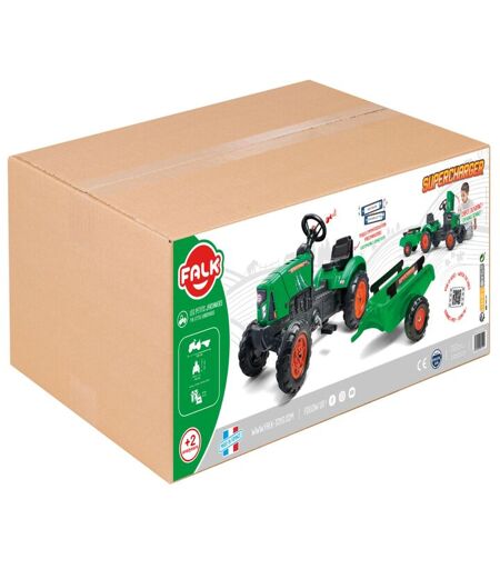 Tracteur à pédales Supercharger avec remorque et capot ouvrant de marque Falk.De 2 à 5 ans.Dimensions du véhicule avec remorque : 132 x 42 x 53 cm. Age minimum : 24 mois ...
