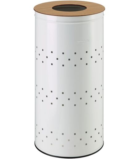 Panier à linge rond 45L - Fabrication Française - Contenance : 45 L - Dimensions : H 58,5cm x Diam 31 cm - Matière : Métal et HPL Détails : - Qualité professionnelle : Acier poudré anti-UV, - Corps perforé permettant l'aération du linge, - Design soigné avec le couvercle en compact HPL chêne clair, - Ouverture centrale astucieuse permettant la dépose rapide du petit linge, - Jonc plastique à la base protégeant des produits d'entretien et évitant les rayures au sol, - Grande capacité, - Matériaux recyclables, - Entretien et nettoyage minimum ...