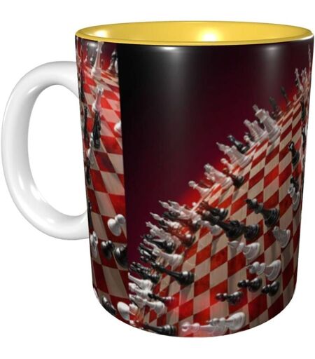Tasses A Cafe D'echecs Internationales Tasse En Ceramique De 11 Oz Pour Le Bureau Et La Maison Tasse De The D'eau Tasse A L'interieur Jaune