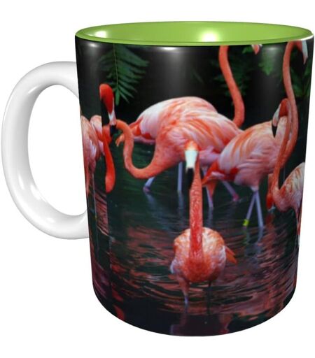 Tasses A Cafe Flamant Rose Tasse En Ceramique De 11 Oz Pour Le Bureau Et La Maison Tasse De The D'eau Tasse A L'interieur Vert