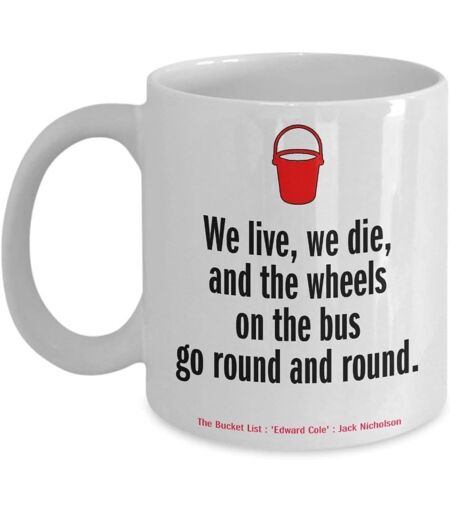 Citation De La Liste De Choses À Faire ""Nous Vivons, Nous Mourons Et Les Roues Du Bus Tournent En Rond."" - Tasse À Café En Céramique Blanche Amusante De 11 Oz