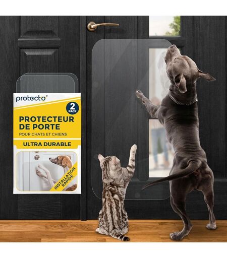Protecto 2-Pack 45 X 30 Cm Protection De Porte Anti-Griffe Chien Et Chat ¿ Film Anti Griffe Chat Résistant - Installation Facile - Protection Murale Transparente ¿ Protection Bas Porte Et Meubles