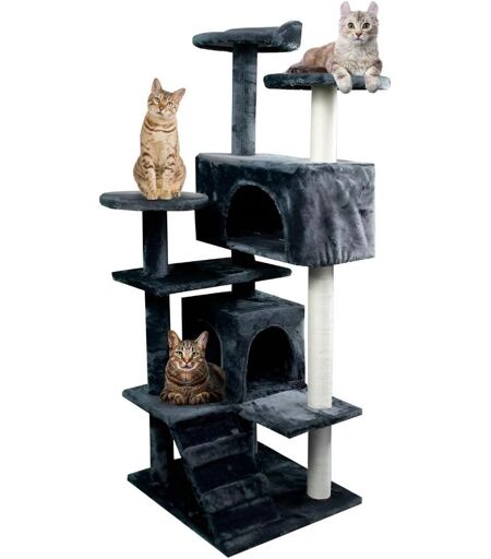 ¿REPOS : le griffoir contient deux abris pour que le chat puisse se reposer. Ces animaux aiment se cacher à l'intérieur. Ils trouveront donc cette zone idéale pour se reposer. De cette façon, nous la localiserons et elle et nous serons tranquilles. ¿RELIEF : Le griffoir aidera notre chat à ne pas déchaîner sa nature féline contre notre canapé ou d'autres biens en causant des dommages. ¿DÉTAILS DU PRODUIT : Dimensions : 50x50x132cm Corde sisal, tissu doux, planches en bois Couleur gris foncé. Poids : 13 kg. ¿UTILISATION : C'est un objet qui remplit la fonction de défouloir pour eux. La corde sisal permet aux griffes de s'enfoncer sans problème ni casse. ¿MOBICLINIC S.L. est un fabricant leader dans le secteur de la santé, qui prend soin de votre santé et, désormais, de celle de votre animal de compagnie. Nous offrons la meilleure qualité et la plus grande confiance à nos clients depuis 1985. Pour accéder à notre catalogue complet, cliquez sur le mot bleu Mobiclinic à côté du titre du produit. ...