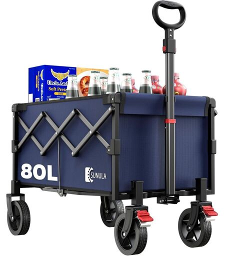 Chariot De Transport Pliable Petit 80 L 100 Kg - Chariot À Main Pliable Avec Poids Propre Réduit De Moitié - Chariot Tout-Terrain Avec Freins - Noir