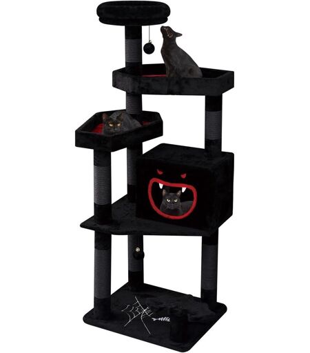 Arbre ¿¿ Chat Gothique Avec Lit De Cercueil, Tour De Chat Noir De 158 Cm Avec Style D¿¿Mon Spacieux, Perchoir En Peluche, Griffoir, Balle Suspendue, Activit¿¿S Pour Chats ¿¿ Plusieurs Niveaux,