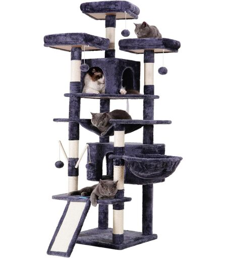 ¡¿Bien qu'il soit haut, il est facile ¿¿ grimper¡¿ : cet arbre rape - chat de grande taille mesure 180 cm de haut et convient aux chats qui aiment ¿ºtre en hauteur, aux chats de grande taille ou ¿¿ plusieurs petits chats qui peuvent monter et descendre dessus ¡¿Un repos agr¿¿able sur la tour ¿¿ chats¡¿ : Les petits chats peuvent se reposer sur les plateformes sup¿¿rieures bien rembourr¿¿es ou observer l'environnement. La caverne pour chats prot¿¿ge les chats des perturbations ext¿¿rieures ¡¿Deux hamacs de formes diff¿¿rentes¡¿ : Un hamac confortable en forme de panier est tr¿¿s appr¿¿ci¿¿ des chats, tandis que l'hamac situ¿¿ au milieu de la maison pour chats attire encore plus la curiosit¿¿ des chats curieux ¡¿Plusieurs endroits pour que les chats aiguisent leurs griffes et jouent¡¿ : Les chats aiment naturellement aiguiser leurs griffes. Un large panneau rape - chat et des arbres rape - chat envelopp¿¿s de sisal sont exactement ce dont les chats ont besoin ¡¿Robuste et stable¡¿ : Ce meuble pour chats est support¿¿ par des montants solides et une base agrandie, renforc¿¿ avec des planches pour garantir la stabilit¿¿ g¿¿n¿¿rale. Les dispositifs anti - basculement offrent une double s¿¿curit¿¿ ...
