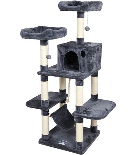 Arbre ¿¿ Chat 145 Cm, Tour De Jeux Pour Chats Avec 2 Pompons 2 Plateformes 1 Niche, Gris