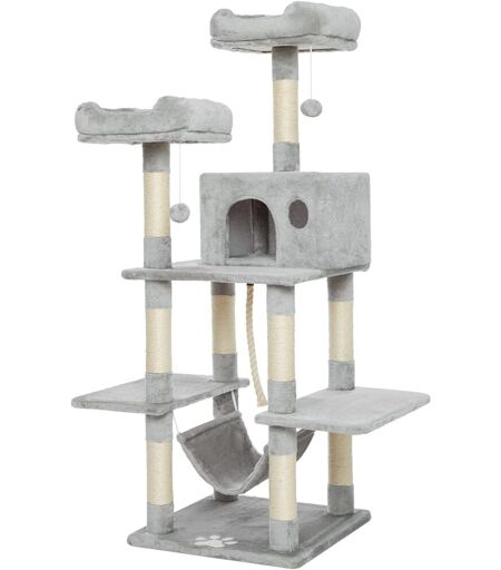 Arbre ¿¿ Chat 145 Cm, Tour De Jeux Pour Chats Avec 2 Pompons 2 Plateformes 1 Niche, Gris