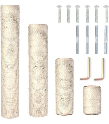 Mat¿¿riau : sisal super naturel, robuste, 4 couleurs au choix en blanc/gris/vert/marron Dimension : longueur 39,9 cm, diam¿¿tre 6,8 cm, daptation de la plupart des griffoirs pour chat. Fonction : poteau de rechange pour arbre ¿¿ chat d'int¿¿rieur, r¿¿novation et pi¿¿ce de rechange. Contenu : avec 2 griffoirs (vis M8 incluses). Ce que vous obtenez : 2 poteaux, notre garantie sans soucis de 3 mois, vis pi¿¿ces petite cl¿¿, et service client amical. ...