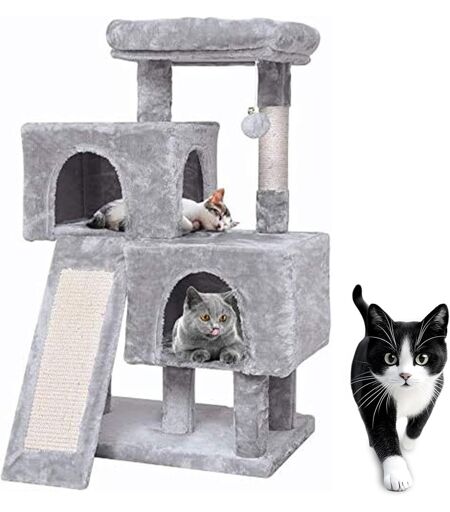 Maxi-Vaue Meuble pour chat Dimensions assembl¿¿ : 96 cm de haut, 55 cm de large et 40 cm de profondeur. Produit id¿¿al si vous avez un espace restreint. Deux grottes de repos et un griffoir int¿¿gr¿¿ Rampe d'acc¿¿s 2 en 1 et grattoir Plateforme au-dessus de la t¿ºte pour un look de chat ...