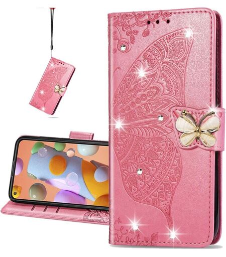 Phone For Huawei P Smart 2020 Coque Diamant Svelte Pu Bling Crystal Papillon En Relief Protecteur Flip Housse Pour Huawei P Smart 2020 Diamond Butterfly Pink Sd