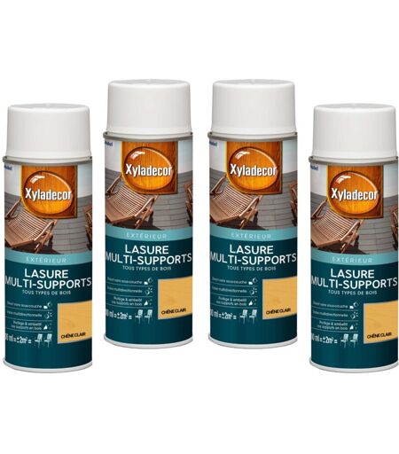 Xyladecor - Lasure aérosol Multi-supports - Lot de 4 - Tous types de bois extérieur - Mat Chêne clair 400 mL