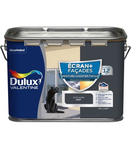 Dulux Valentine - Peinture Façade Ecran+ Chantier Facile - direct sans sous-couche - Mat Gris Anthracite RAL7016 2,5 l