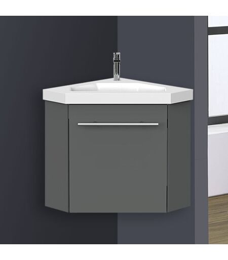 Biubiubath Meuble de coin en pentagone, 39,5x39,5x42cm, avec vasque + une porte, Anthracite
