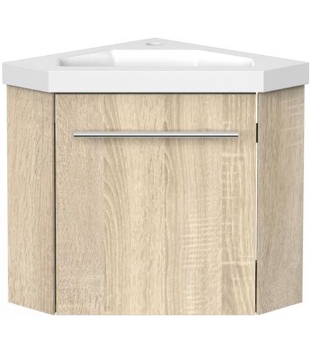 Biubiubath Meuble de coin en pentagone, 39,5x39,5x42cm, avec vasque + une porte, Chêne