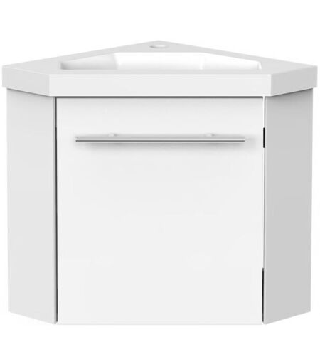 Biubiubath Ensemble de meuble Salle de Bain de Rangement Blanc,Meuble de coin en pentagone + Tiroir, 39.5 x 39.5 x 42cm,sans vasque
