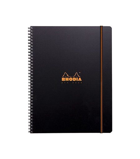Cahier PROBOOK Rhodia spirale - 22,5x29,7cm - 160 pages lignée 6mm perforées 4 trous - noire polypro