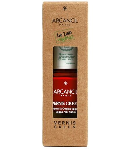 La formule du Vernis Green le Lab Végétal, composée d'ingrédients à 77% biosourcés et à 68% d'origine naturelle issus de la pomme de terre, du maïs, du blé, ou encore du manioc, allie brillance, longue tenue et respect des ongles. Sa formule 10-Free ne contient pas d'ingrédients tels que le toluène, les phtalates, le camphre, le xylène, le formaldéhyde, l'éthyl tosylamide, le triphénylphosphate, la benzophénone, le styrène et les parabènes. Le Vernis Green offre un fini ultra-brillant pour des ongles éclatants !Son pinceau large facilite l'application en épousant parfaitement la forme de l'ongle pour un résultat uniforme.100% vegan, cette formule ne contient aucun ingrédient d'origine animale.Dermatologiquement testé1% du chiffre d'affaire de ce produit est reversé par Arcancil à l'organisme 1% pour la planète au profit d'associations et de projets concrets pour protéger l'environnement ...